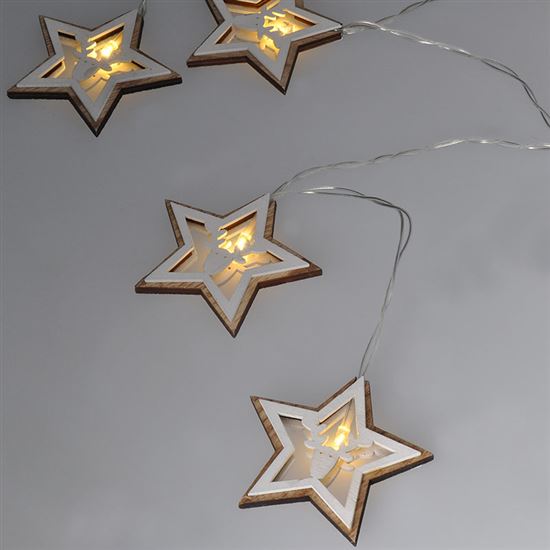 Solight LED vánoční řetěz hvězdy, 10x LED, dřevo, 1,5m, 2x AA