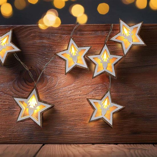 • vánoční dekorativní řetěz s dřevěnými hvězdami a LED diodami