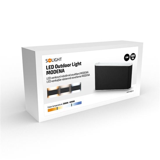 Designové LED svítidlo Modena nabízí možnost nastavit teplotu světla pomocí zabudovaného přepínače – mezi 3000K, 4000K a 6000K. Se spotřebou 12 W a světelným tokem 800 lm (680 lm užitečných) vytváří příjemné a přizpůsobitelné osvětlení pro interiér i exteriér.
