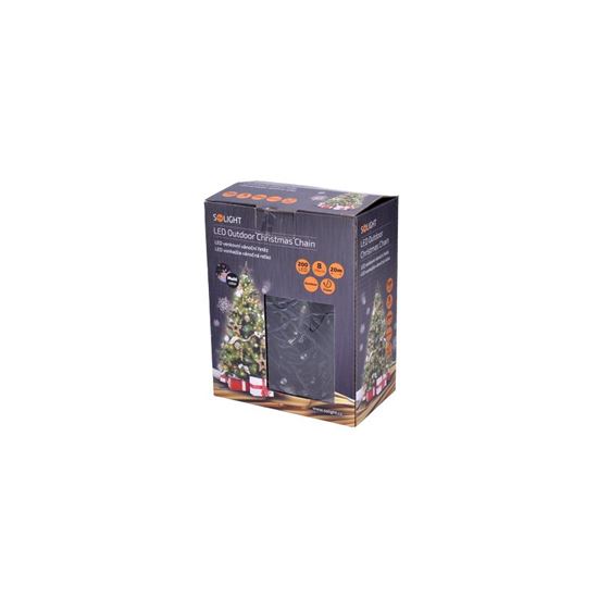 Solight LED venkovní vánoční řetěz, 200 LED, 20m, přívod 5m, 8 funkcí, časovač, IP44, vícebarevný | SOLIGHT