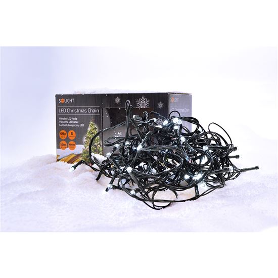 Solight LED venkovní vánoční řetěz, 200 LED, 20m, přívod 5m, 8 funkcí, časovač, IP44, studená bílá | SOLIGHT