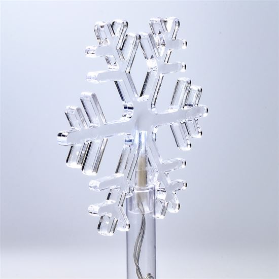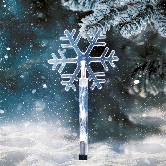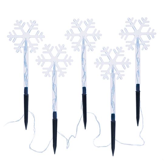 Vytvořte zimní pohádku na své zahradě pomocí těchto LED zapichovacích dekorací ve tvaru sněhových vloček. Sada obsahuje 5 vloček s celkem 15 LED diodami, které září studeným bílým světlem a krásně vyniknou v trávníku, květináčích nebo kolem chodníku. Výška vloček je 35 cm a celková délka osvětlení činí 140 cm, doplněná o 50cm přívodní kabel.
