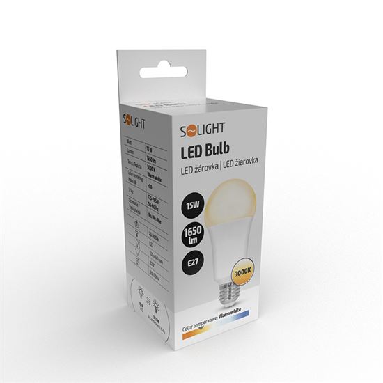 Solight LED žárovka, klasický tvar, 15W, E27, 3000K, 220°, 1650lm | SOLIGHT