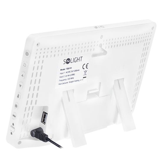 Solight meteostanice, extra velký barevný LCD, teplota, vlhkost, tlak, RCC, USB nabíjení, bílá | SOLIGHT