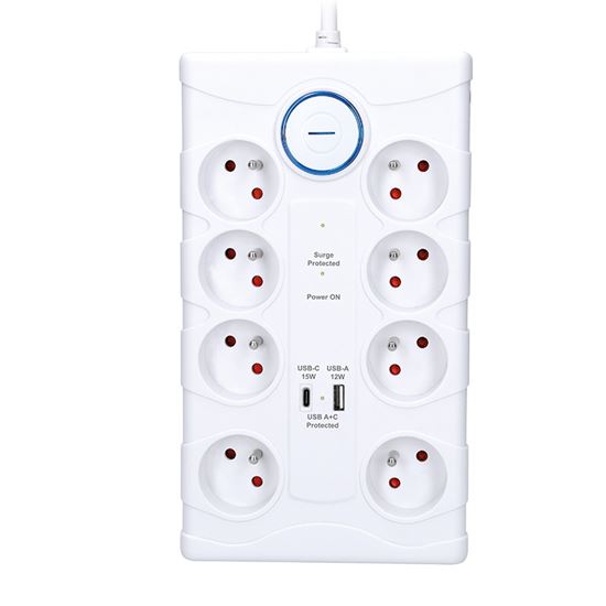 Spolehlivá přepěťová ochrana s integrovanou USB nabíječkou chrání vaše zařízení proti náhlým výkyvům napětí. Díky osmi zásuvkám a dvěma USB portům je ideální do domácnosti i kanceláře. S maximální zátěží až 3680 W zvládne i energeticky náročnější spotřebiče.