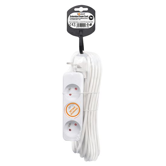 Prodlužovací přívod pro každodenní použití Praktický bílý prodlužovací kabel s délkou 7 metrů a třemi zásuvkami umožní přivést elektrickou energii tam, kde není k dispozici pevná zásuvka. Ideální pro domácí i kancelářské využití.