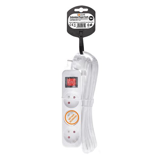 Solight prodlužovací přívod, 3 zásuvky, bílý, vypínač, 5m | SOLIGHT
