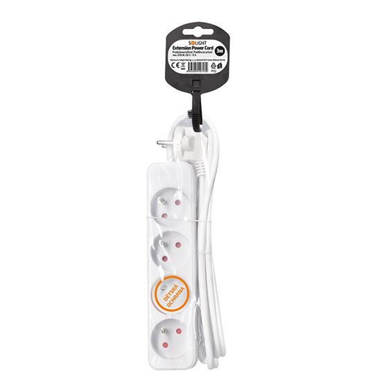 Prodlužovací přívod pro každodenní použití Praktický bílý prodlužovací kabel s délkou 3 metry a čtyřmi zásuvkami umožní přivést elektrickou energii tam, kde není k dispozici pevná zásuvka. Ideální pro domácí i kancelářské využití.