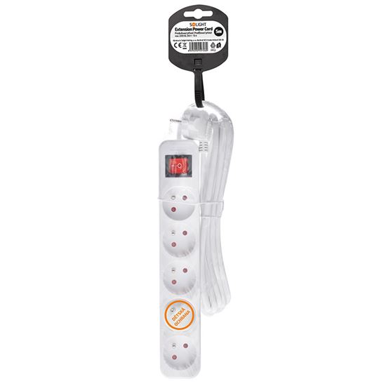 Prodlužovací přívod pro každodenní použití Praktický bílý prodlužovací kabel s délkou 5 metrů a pěti zásuvkami umožní přivést elektrickou energii tam, kde není k dispozici pevná zásuvka. Podsvětlený vypínač umožňuje pohodlné ovládání všech připojených zařízení. Ideální pro domácí i kancelářské využití.