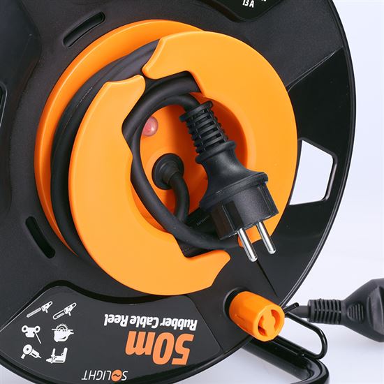 Ochrana proti povětrnostním podmínkám a zvýšená bezpečnost Gumový kabel s vodiči o průřezu 3×1,5 mm2 je vhodný pro venkovní použití i vnitřní prostory. Buben je vybaven zásuvkou s dětskými pojistkami a tepelnou pojistkou, která zajišťuje bezpečnost při přetížení nebo neúplném odvinutí kabelu. Produkt splňuje stupeň krytí IP44, který zajišťuje ochranu proti stříkající vodě.