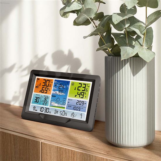 Tato profesionální meteostanice je ideálním řešením pro všechny, kteří chtějí mít kompletní přehled o počasí a atmosférických podmínkách. Vyniká velkým, dokonale čitelným 19cm displejem s možností nastavení podsvícení a zobrazuje široké spektrum meteorologických údajů včetně teploty, vlhkosti, atmosférického tlaku, směru a rychlosti větru či srážek. Díky pokročilým senzorům dokáže přesně měřit rosný bod, pocitovou teplotu, tepelný index a chlad větru, což ocení nejen meteorologičtí nadšenci, ale i zemědělci, stavitelé nebo sportovci. Rádiově řízený čas (RCC), dvojitý budík s možností odložení a předpověď počasí v 10 grafických úrovních přidávají na praktičnosti. Součástí je nastavitelná konzole s dosahem 100 m, která zajistí přesné venkovní měření, a možnost připojení až 3 přídavných senzorů umožňuje sledování podmínek na více místech současně. Paměť minimálních a maximálních hodnot, výstrahy na teplotu, vítr či srážky a notifikace o slabé baterii jsou samozřejmostí. Díky USB napájení i možnosti provozu na AA baterie je meteostanice flexibilní a snadno umístitelná, ať už ji chcete mít na stole, nebo zavěšenou na zdi. Kombinace precizního měření, širokých funkcí a kvalitního zpracování z ní dělá ideální volbu pro každého, kdo chce mít spolehlivá data o počasí na profesionální úrovni.
