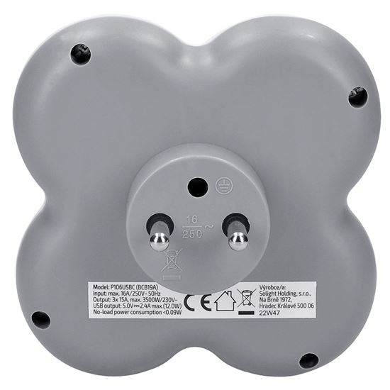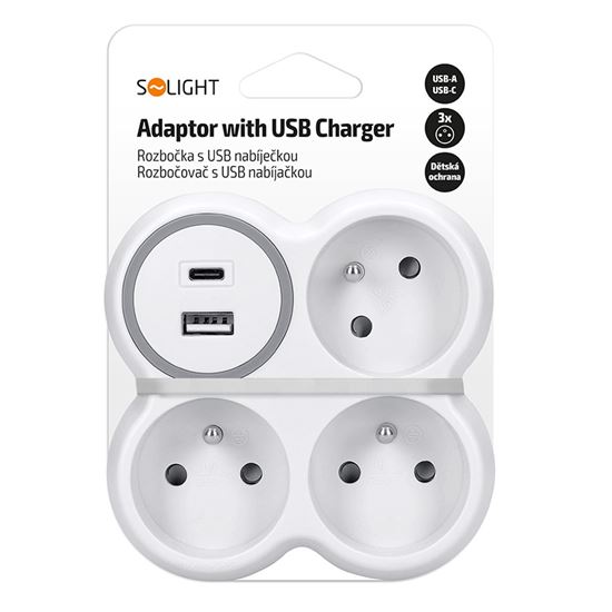 Solight rozbočka, 3x 15A, USB nabíječka A+C, bílá-šedá | SOLIGHT