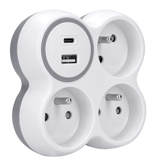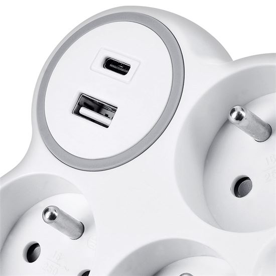 • Solight rozbočka, 3x 15A, USB nabíječka A+C, bílá-šedá