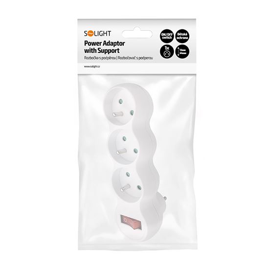 Solight rozbočka s podpěrou, 3 x 10A, bílá, vypínač | SOLIGHT