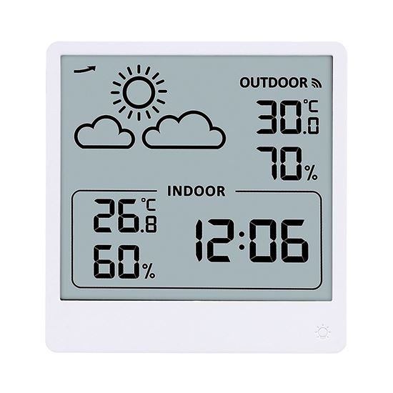 TeploměrMěření vnitřní teploty od -9,9°C do +50°C a venkovní teploty od -40°C do +70°C. Měření vlhkosti (20% až 95%) pro vnitřní i venkovní prostředí. Ukládání maximálních a minimálních hodnot teploty a vlhkosti, zobrazení trendu změny tlaku a předpověď počasí. Možnost volby jednotek teploty °C/°F. Napájení: hlavní jednotka a senzor 2× AAA baterie (není součástí balení). Barva: bílá.
