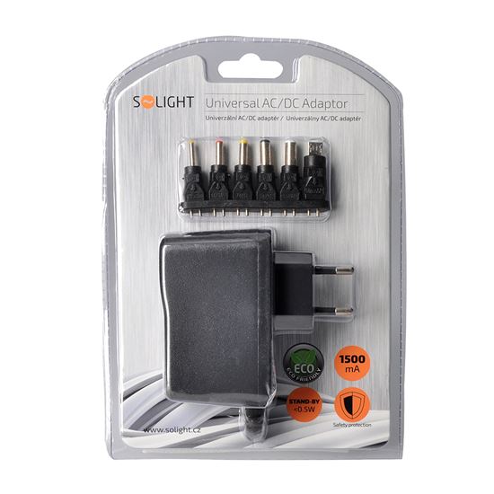 Solight univerzální síťový adaptér 1500mA, stabilizovaný, výměnné konektory | SOLIGHT