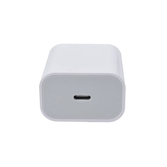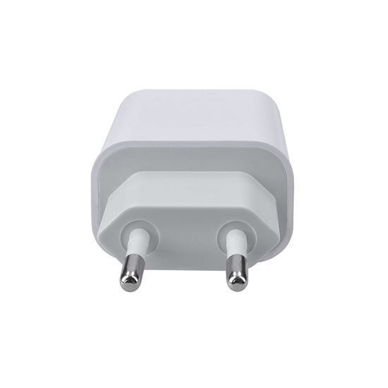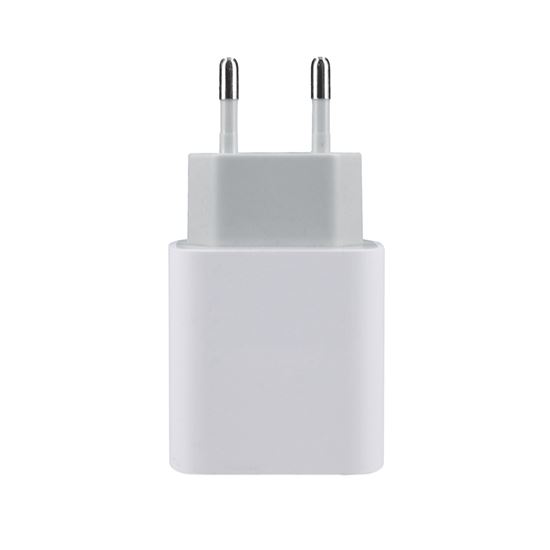 Univerzální napájecí adaptér USB-C s výkonem 20W pro rychlé nabíjení PD fast charge. Vstup: AC 100 – 240V, 50/60Hz, 0.6A max. Výstup: DC 5V/3A, 9V/2.22A, 12V/1.66A, 20W max. Ochrana proti zkratu a nadproudová ochrana. Rozměry: 42x27x79mm. Barva: bílá.