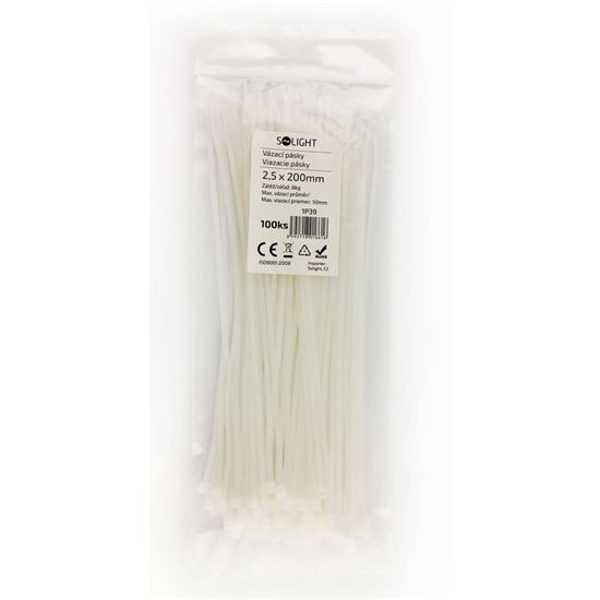 Solight vázací nylonové pásky, 2,5 x 200mm, natural, 100ks | SOLIGHT