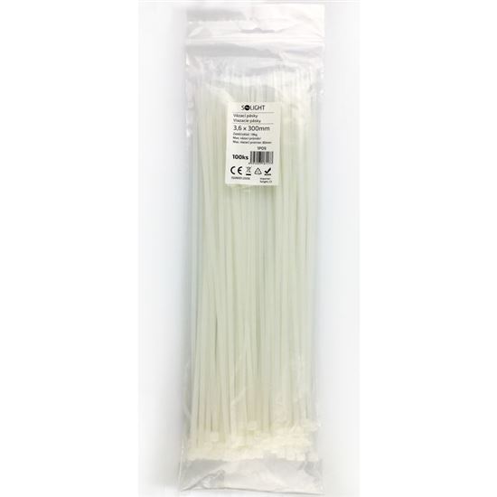 Solight vázací nylonové pásky, 3,6 x 300mm, natural, 100ks | SOLIGHT