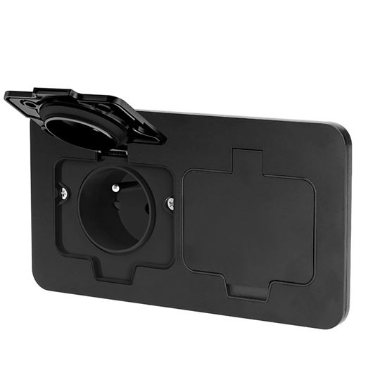 Víčka se otevírají až do úhlu 130°, to usnadňuje manipulaci s přívodními kabely. Oproti modelům s menším úhlem otevření zde nedochází k namáhání pantů a k ohrožení ulomení víčka ani při častém používání. Zásuvka je vybavena dětskou pojistkou pro maximální bezpečnost v místech s pohybujícími se malými dětmi.