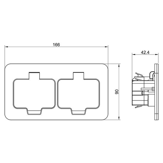 • zásuvka dvojnásobná uzemněná 2x (2P+E), obdélníkový tvar