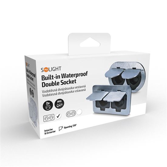 Solight vestavná podlahová dvojzásuvka, IP55, obdélníkové víčko | SOLIGHT