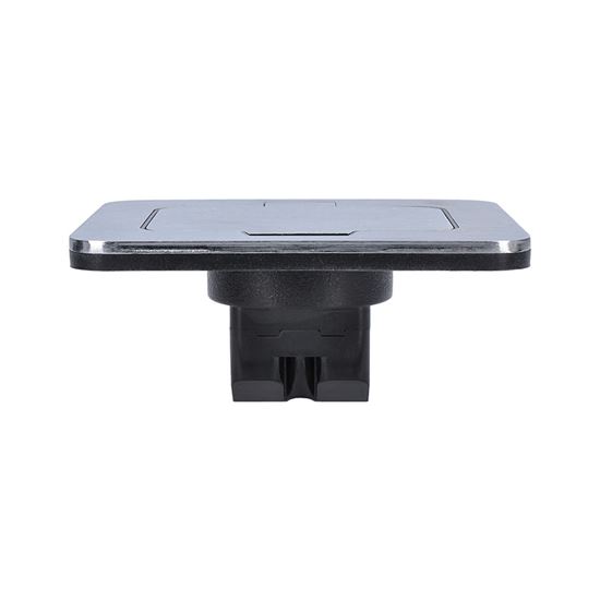 Vrchní kryt zásuvky je vyroben z odolné zinkové slitiny, která zajišťuje pevnost a zároveň ochranu proti korozi. Na povrchu nejsou viditelné žádné šrouby – montážní otvory zůstávají skryté pod víčkem. Díky tomu působí zásuvka elegantně a profesionálně a zároveň se snadno čistí.