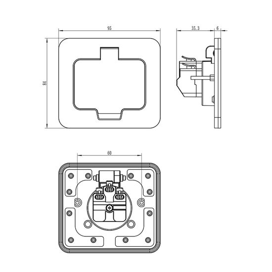 Zásuvka je navržena pro maximální zátěž 3680 W, tzn. proudové zatížení 16 A při napětí v síti 230 V~. V balení je instalační krabice s gumovými průchodkami pro zvýšení odolnosti proti pronikání vlhkosti z okolí. Zásuvka je také kompatibilní se standardní instalační krabicí typu KU68, lze ji tedy umístit do již hotové elektroinstalace. Samotná instalace zásuvky je jednoduchá a nevyžaduje žádné speciální nástroje.