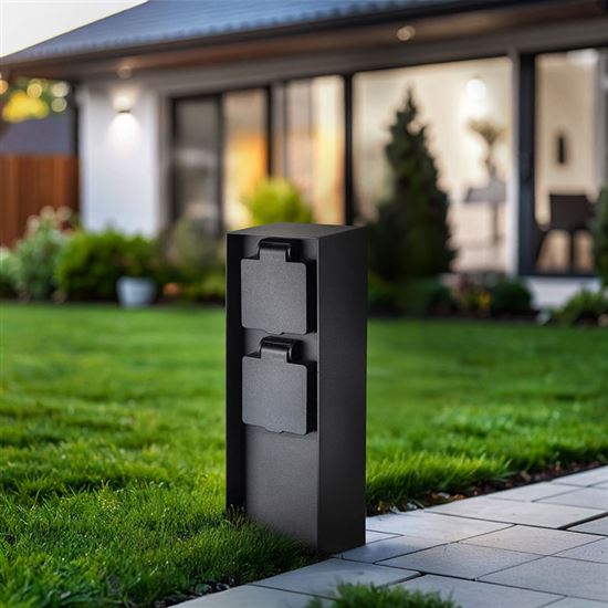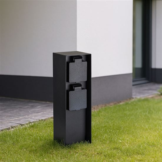 Odolný, bezpečný a spolehlivý Dvě zásuvky s dětskými pojistkami jsou chráněny samouzavíratelnými krytkami, které brání vniknutí vlhkosti a nečistot. Díky krytí IP44 je sloupek vhodný i pro použití za deště nebo ve vlhčím prostředí. Zásuvky zvládnou zátěž až 3680 W (16 A při 230V~), což je ideální pro venkovní osvětlení, zahradní techniku i běžné spotřebiče. Vhodný pro domy, pergoly i firemní areály.