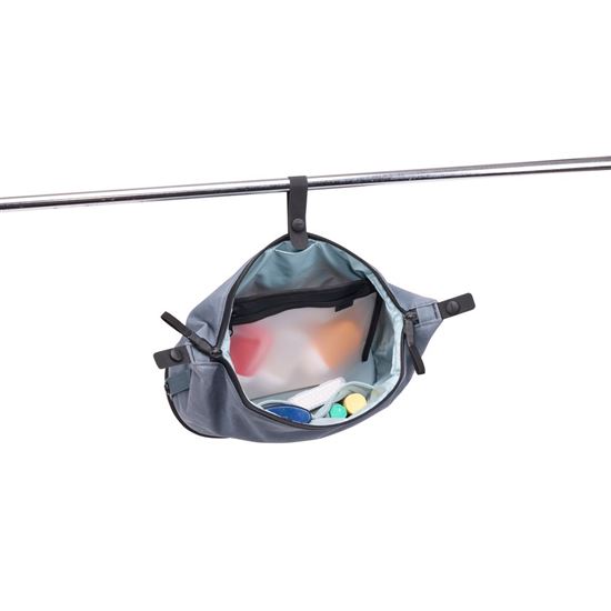 Až dorazíte do cíle, pohodlně zavěste toaletní tašku pomocí popruhu, který lze také schovat, když se nepoužívá.