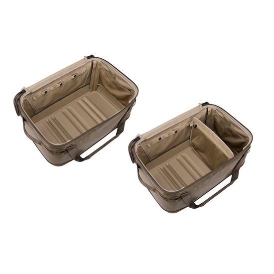 Voděodolná tvarovaná základna z EVA chrání jak obsah přepravního boxu, tak vaše vozidlo před vlhkostí a špínou. Odolná, voděodolná tkanina se snadno čistí, což zajišťuje, že zůstane připravená na dobrodružství. Různé možnosti přenášení – včetně úchytů pro transport jednou rukou a koncových úchytů pro manévrovatelnost – umožňují snadné uchopení a přenesení.